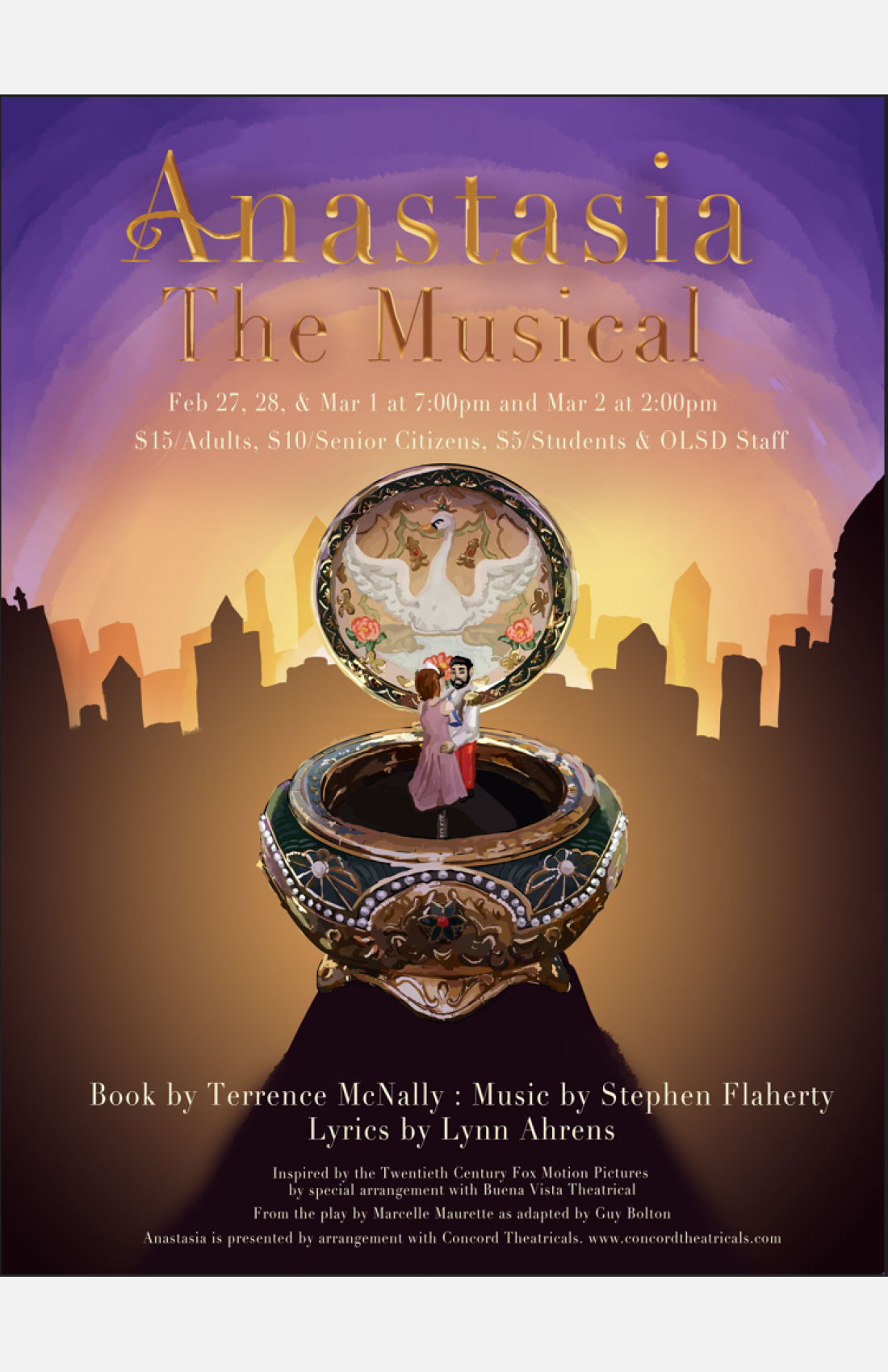 It's time for the latest in Berlin Theatre Anastasia - Feb 27-Mar 1 at 7:00 pm and Mar 2 at 2:00 pm. Tickets are $15/adults, $10/seniors, $5/students and are available at Berlin Theatre Box Office. Anastasia is inspired by the animated film and the historical mystery surrounding the youngest daughter of the last Russian Tsar. Please be aware that there are scenes with guns/gunfire, viewer discretion is advised.